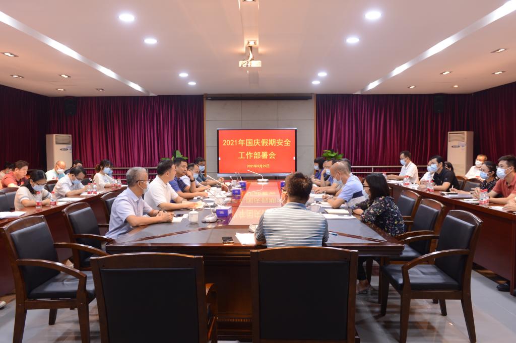 9月29日下午,我校召开2021年国庆假期安全工作部署会。校党委书记朱益民,党委副书记、校长贺定修,党委委员、副校长杨云奇及相关部门负责人参加会议。