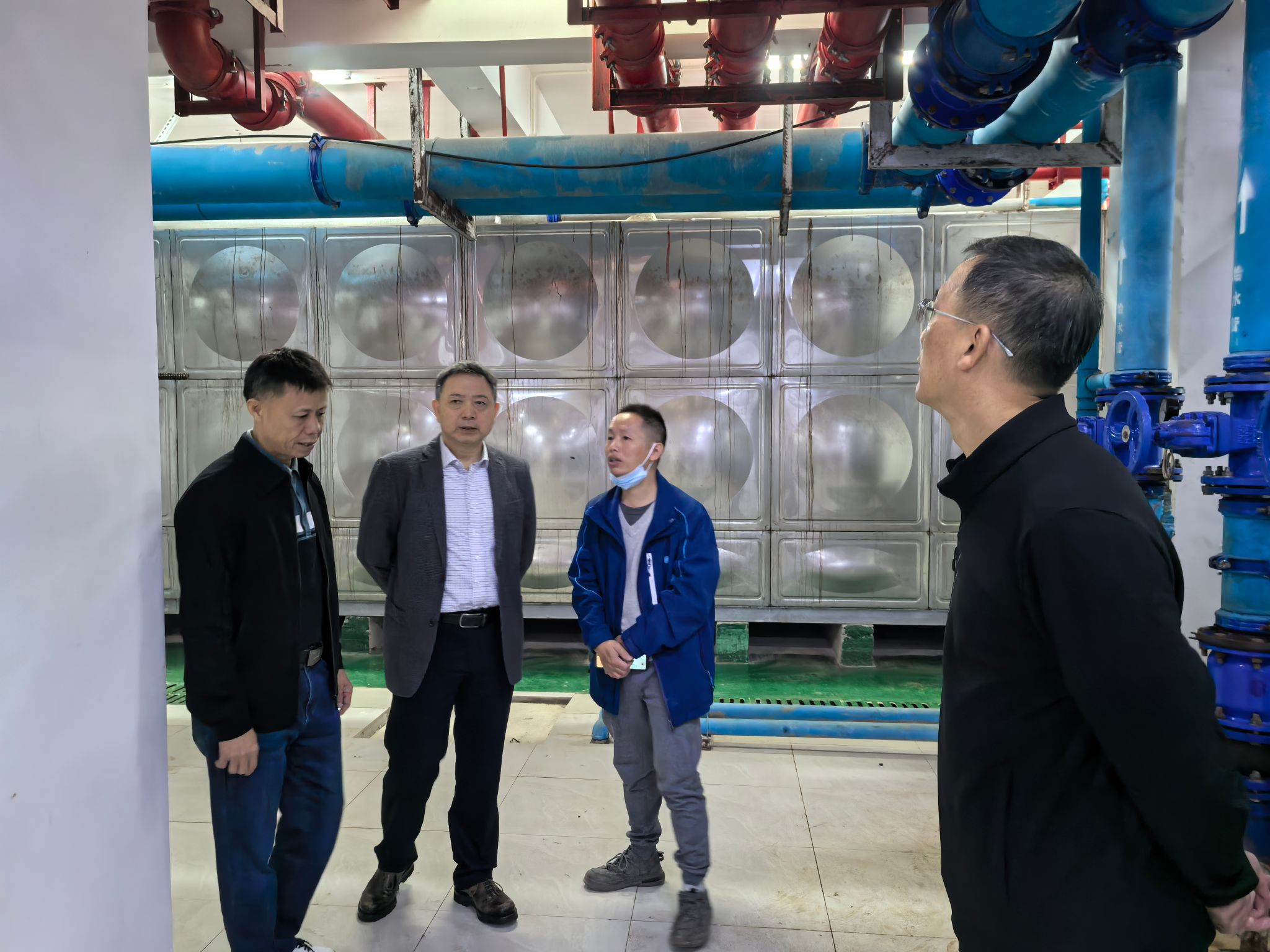 杨云奇副校长一行先后深入学生宿舍、食堂、水泵房、高层住宅等重点场所,通过实地查看、听取报告、询问细节等方式,重点检查消防器材配备及有效性、设施设备维护记录、用电线路敷设规范情况,以及疏散通道、安全出口畅通情况,并详细了解安全隐患排查整治工作推进落实情况。